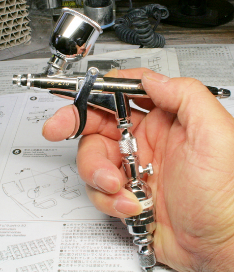 ここで、もう一つ、最近私の塗装環境に加わった新しい相棒を紹介させてください。 それが、GSIクレオスの「プロコンBOY WAトリガータイプ ダブルアクション0.3」です。