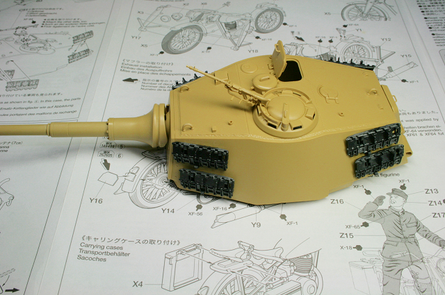さて、本題に戻ります。サーフェーサー塗布前の事前準備として、塗装後に組み付ける砲塔と車体を分離しておきます。