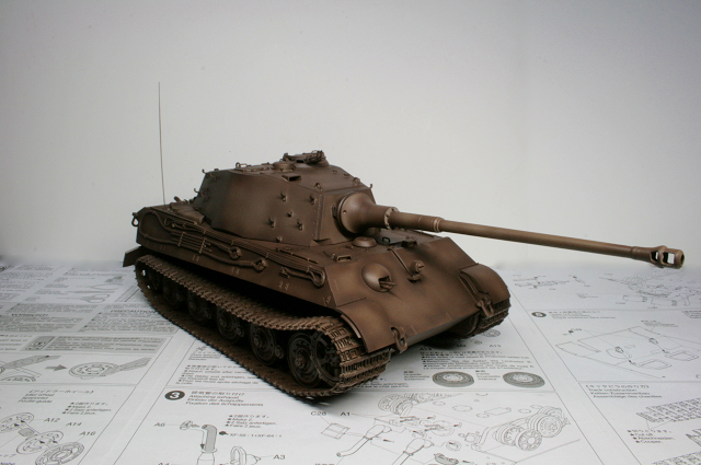 こんにちは!タミヤ 1/35 ドイツ重戦車キングタイガー(ティーガーII)の製作記。今回は、基本色であるダークイエローの塗装までの工程をご紹介します。