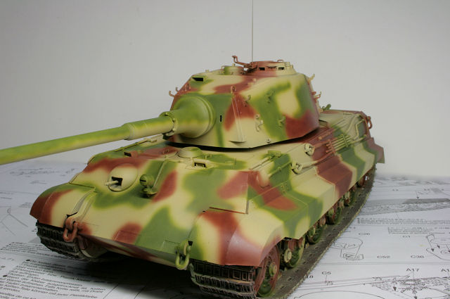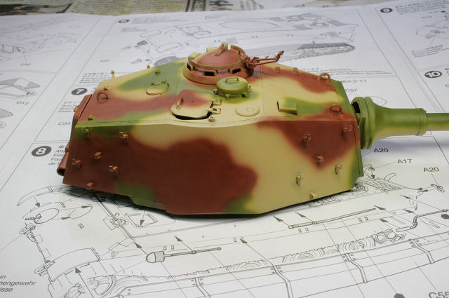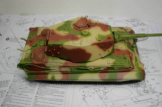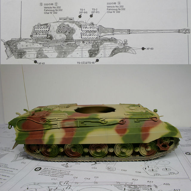 こんにちは!タミヤ 1/35 ドイツ重戦車キングタイガー(ティーガーII)の製作記、今回も引き続き3色迷彩塗装の続き、レッドブラウンの迷彩になります。