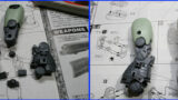 デカールの貼付箇所の説明やエッジを際立たせ、巨大感を演出するテクニックと武器類の塗装